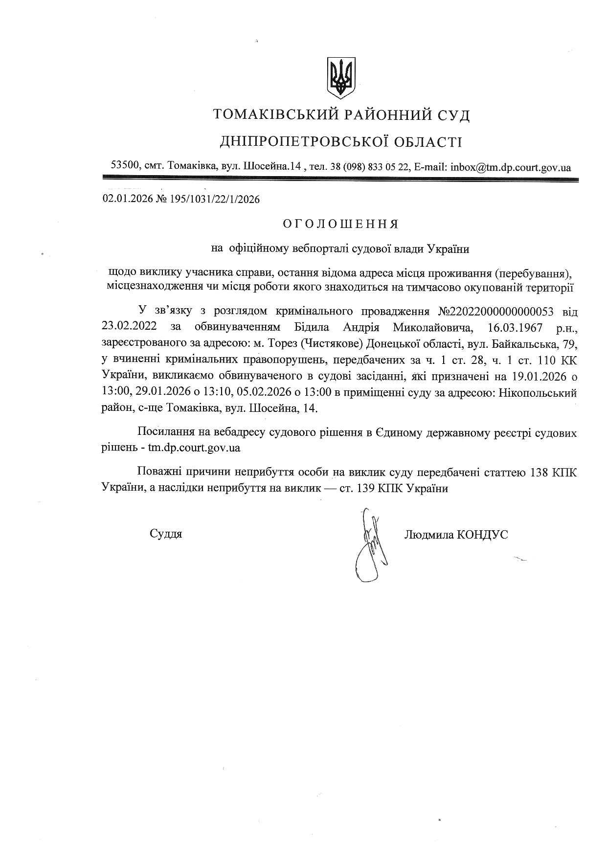 Оголошення про виклик до суду